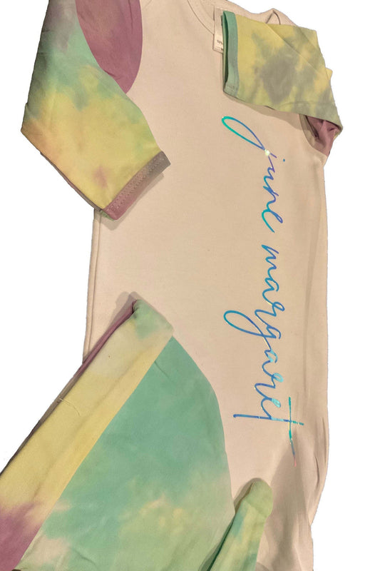 Personalized Tie Dye Baby Gown layette set -