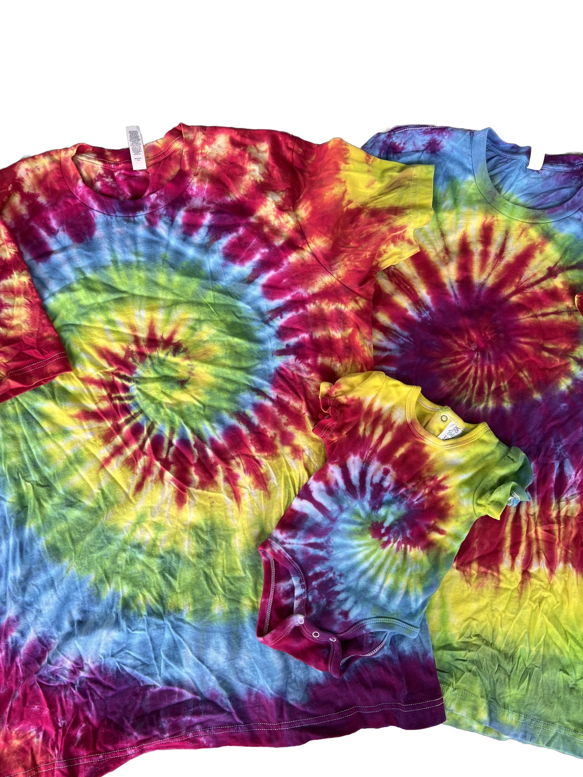 Add a pop of color to your wardrobe with this handmade rainbow tie-dye T-shirt! Each shirt is made to order, so every piece is unique. Slight variations and occasional color spots are normal and part of its one-of-a-kind charm.