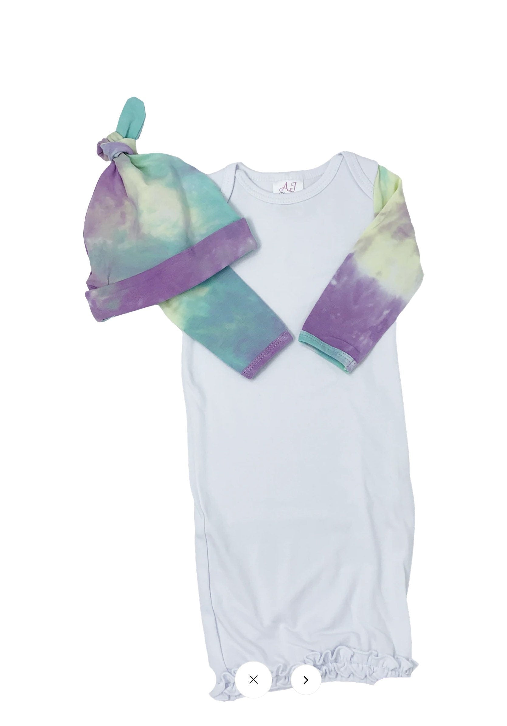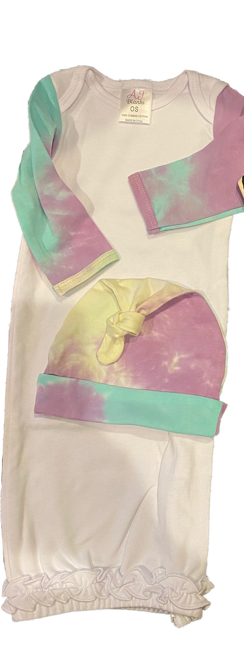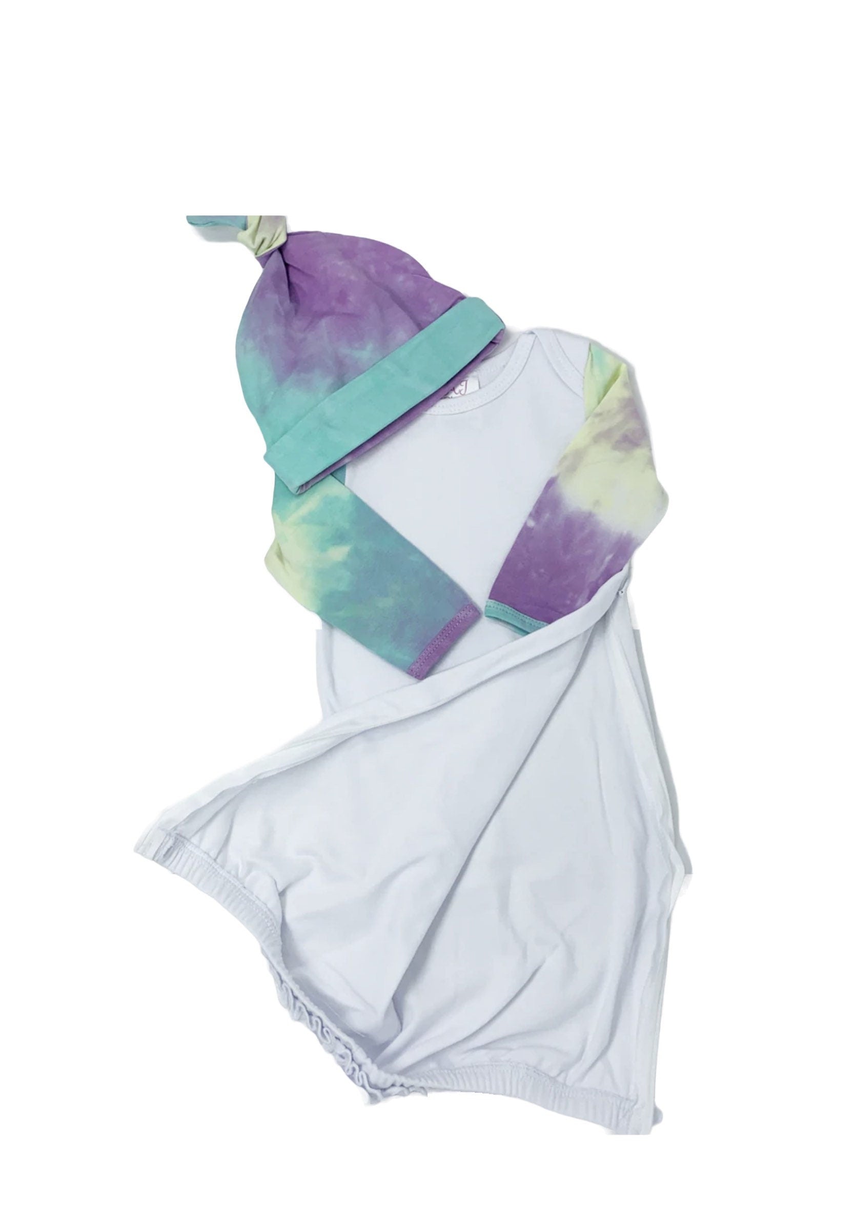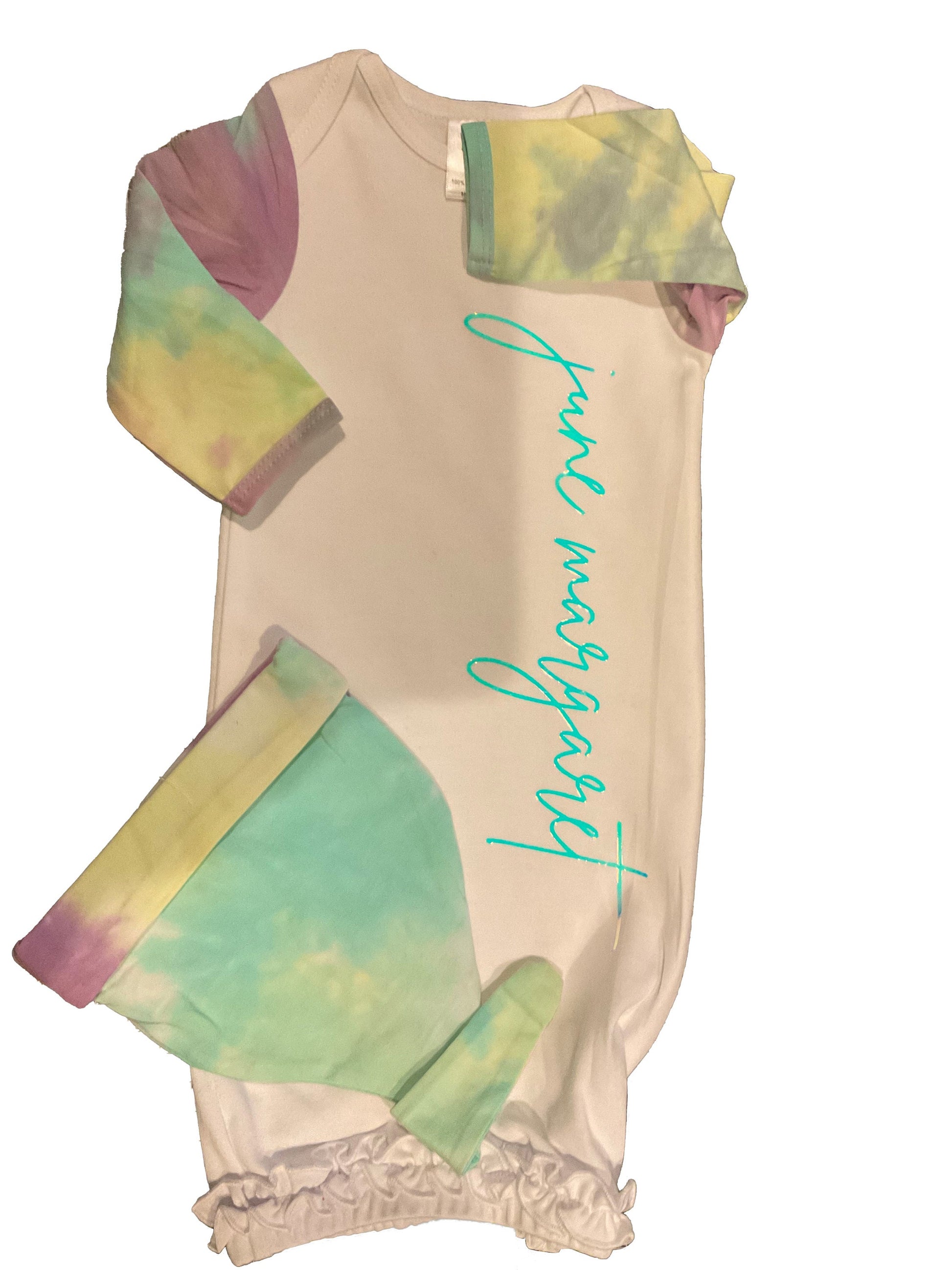 Personalized Tie Dye Baby Gown layette set -