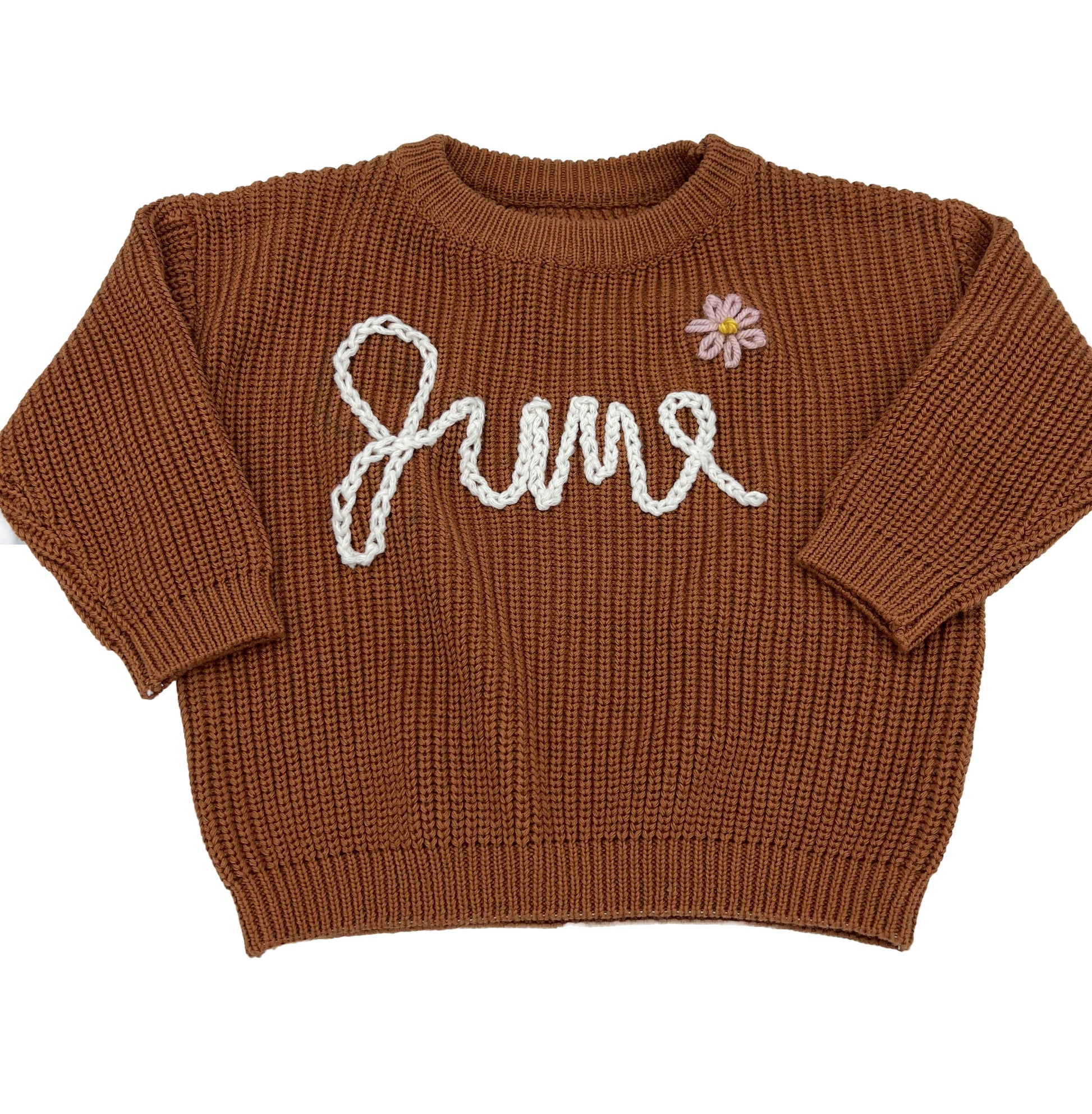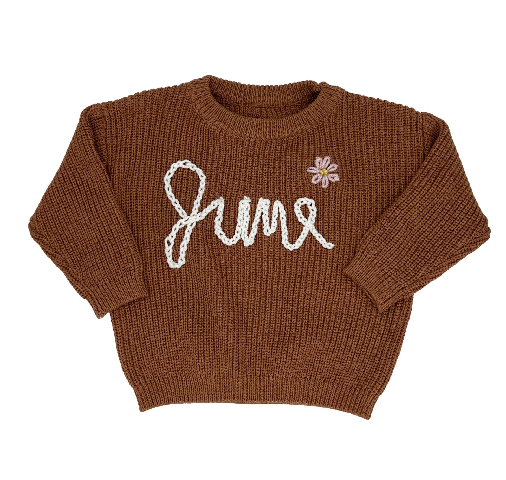 Our adorable hand embroidered “Name” sweaters are perfect for birth announcements, newborn/family photos, baby shower gifts, birthday gifts or any occasion! Embroidery is done by hand and can vary. Every sweater is one of a kind as they are all customized with name, sweater color and embroidery color!