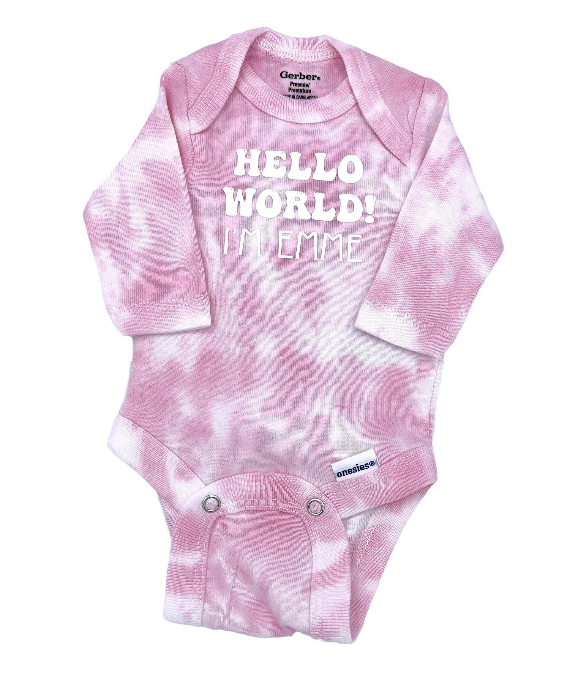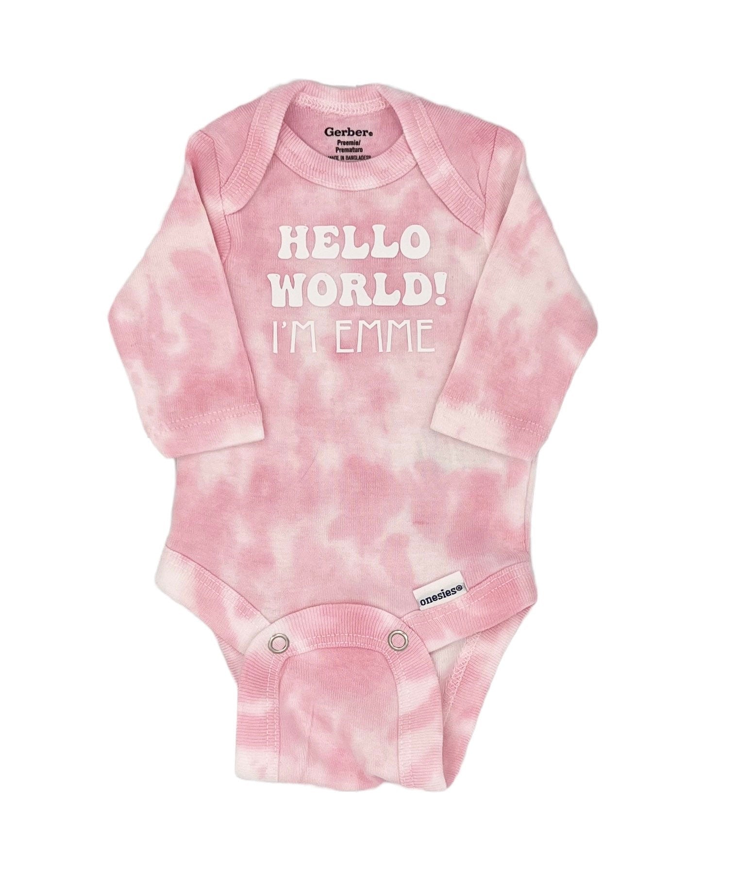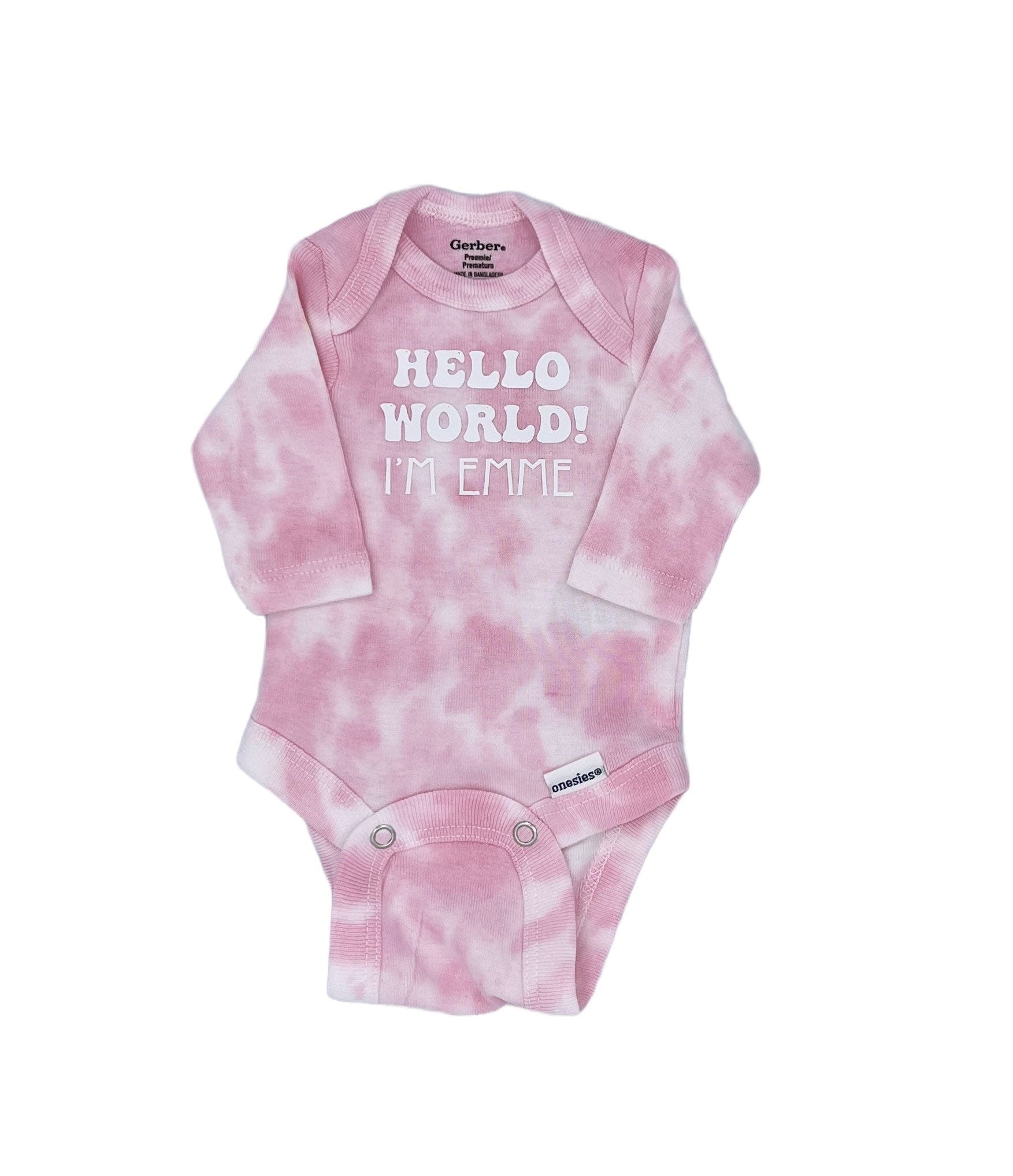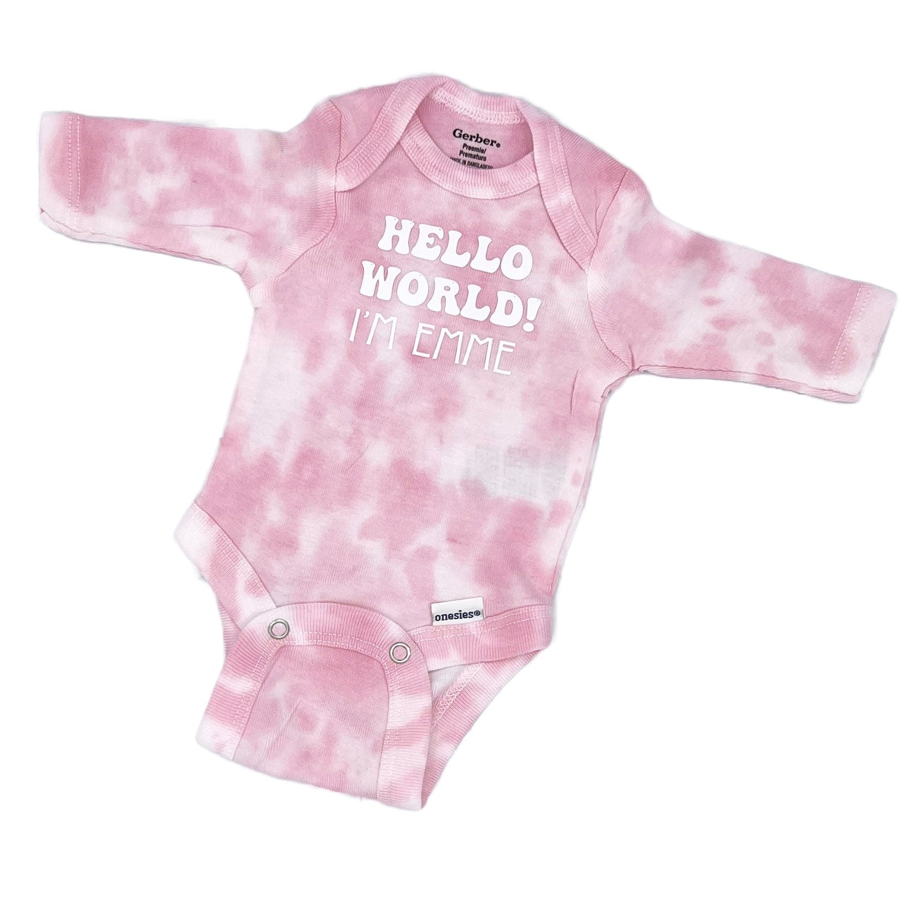 Personalized HELLO WORLD Tie-Dye Baby Bodysuit- Welcome Baby Home with a cute tie-dyed bodysuit.-made to order -
