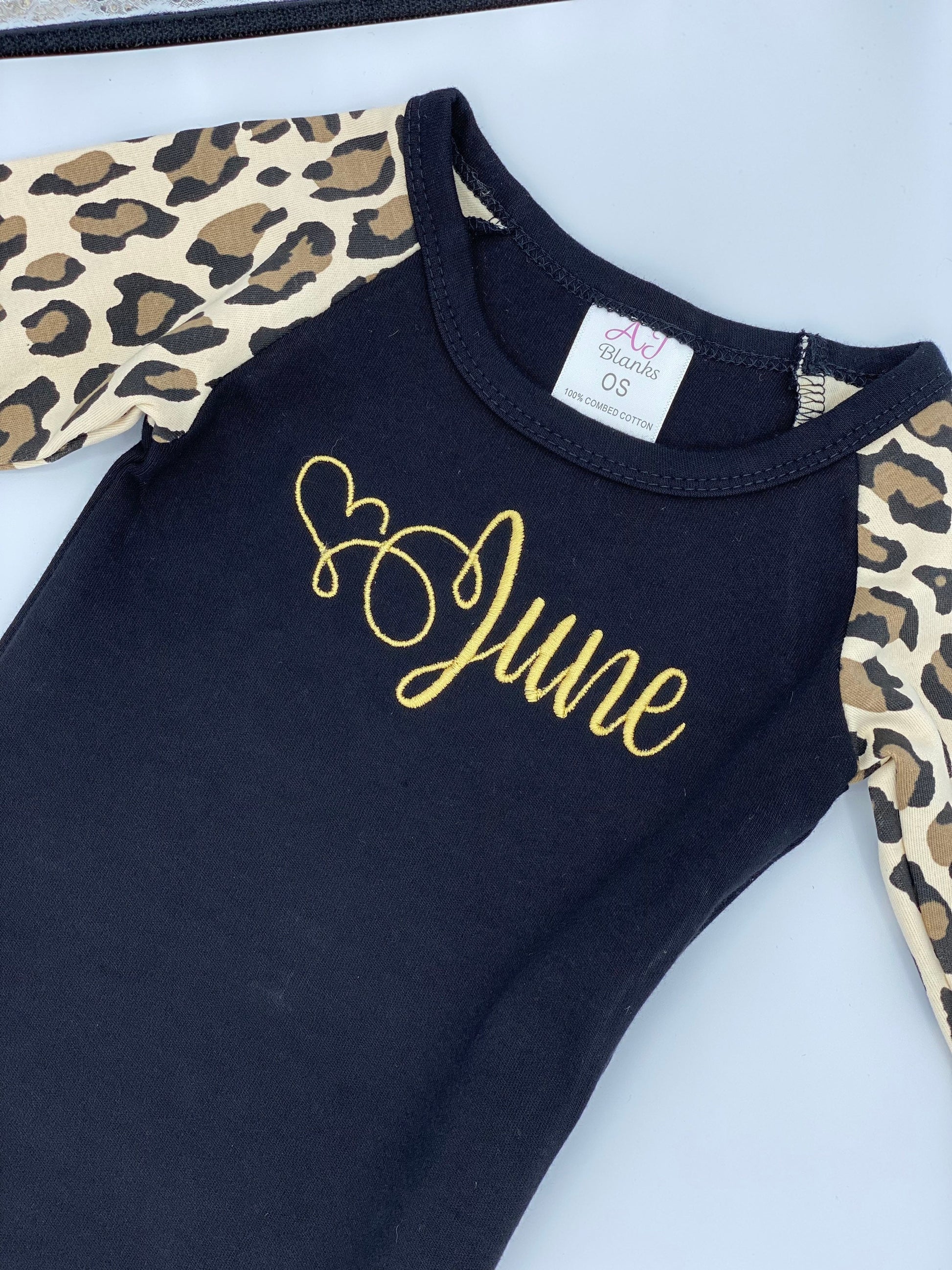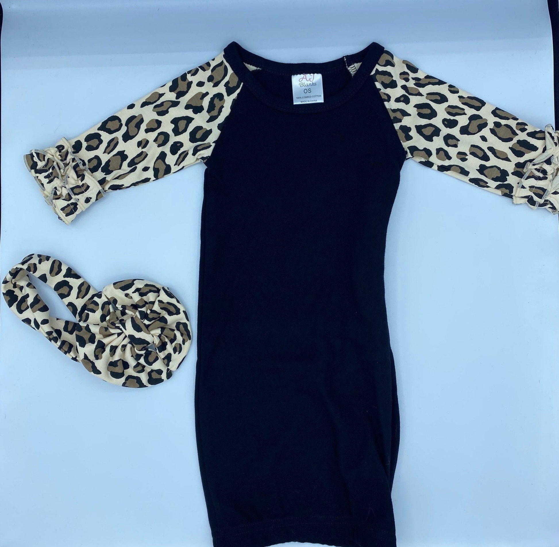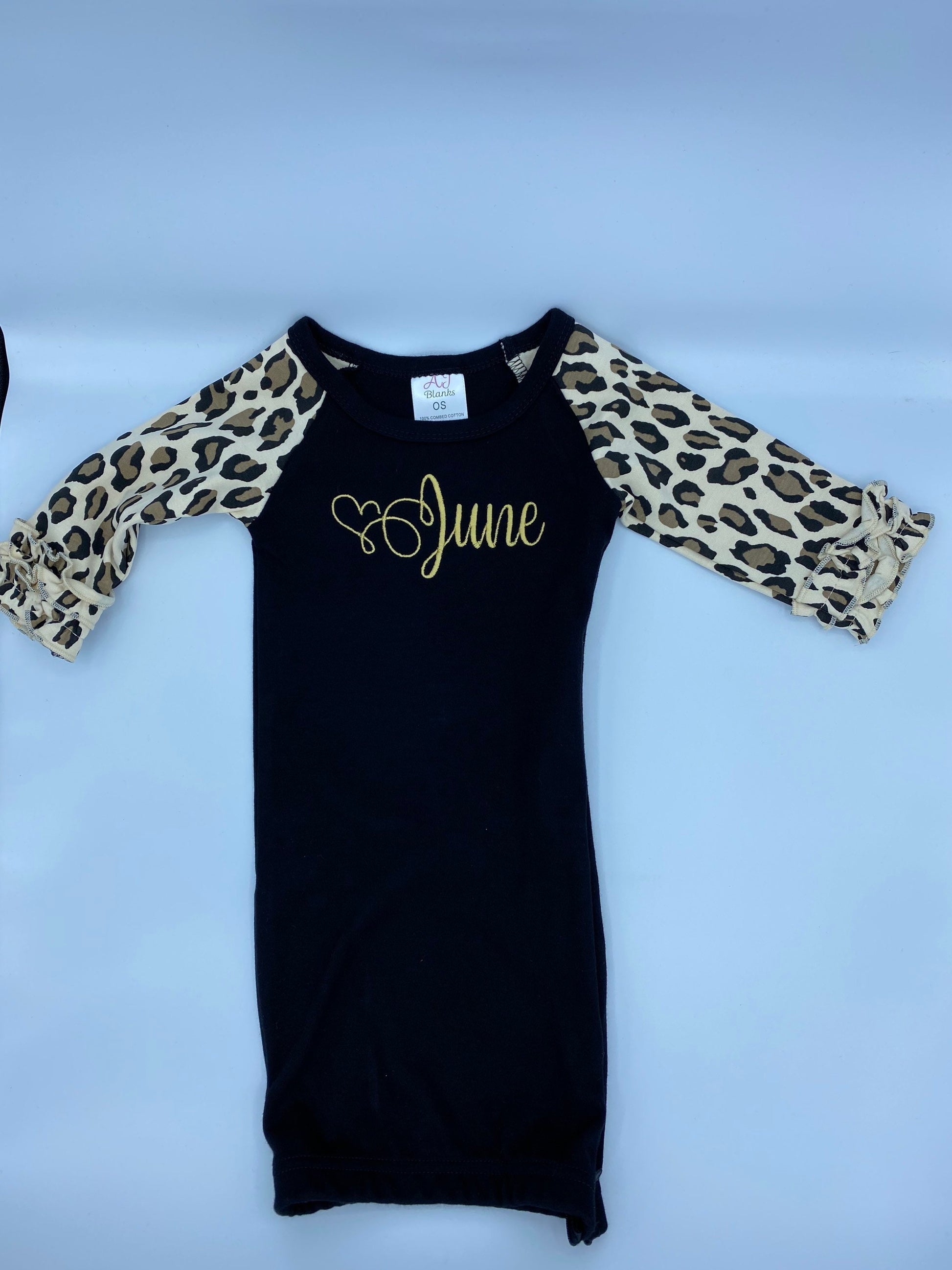 Personalized embroidered Leopard Baby Gown with Headband - Newborn Gown - Coming Home Outfit - Personalized Baby Gown - Baby Sleeper Gown
